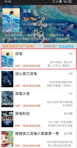 2、瀏覽相關(guān)影視資源列表,選擇其中一個進入播放頁面。