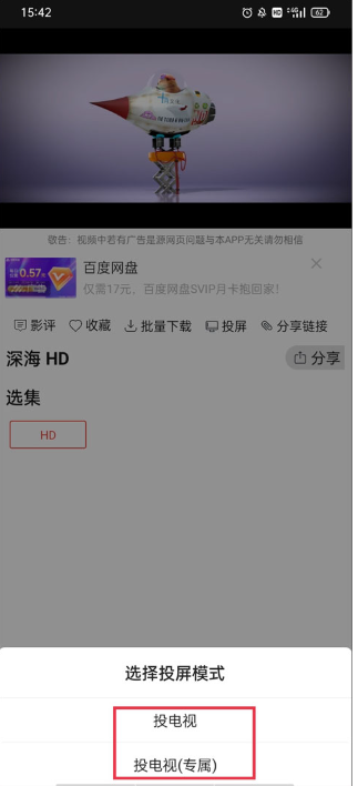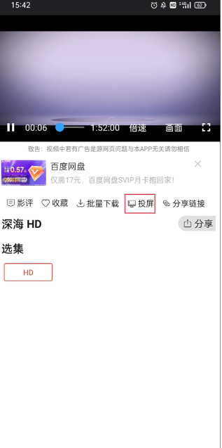 3、在播放界面下方找到“投屏”按鈕并點擊。
