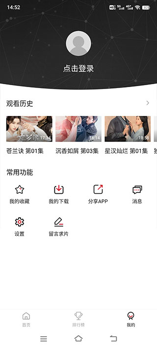 4、在“我的”頁面,不用登錄即可查看最近觀看歷史記錄,隨時(shí)隨地方便下次續(xù)播!