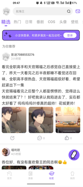 3、軟件還為大家提供專屬社區(qū),在這里大家能討論二次元相關(guān)的所有內(nèi)容,還能分享日常。
