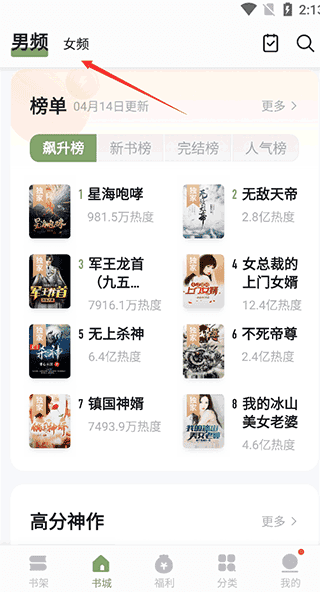 下載安裝完成后,打開App主頁面,您會(huì)看到豐富的圖書分類和最新書籍推薦。頁面左上角設(shè)有男女專屬的閱讀選擇。