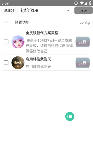 ⑩快捷復原DB:顯示一個懸浮窗,點擊后使用你初始化的DB替換