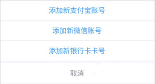 3、點(diǎn)擊添加提現(xiàn)賬號(hào),可以選擇支付寶或銀行卡賬號(hào),填寫完畢后輸入金額進(jìn)行提現(xiàn)。